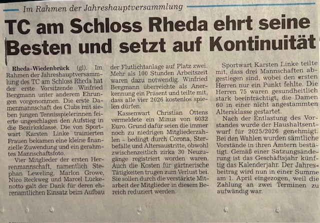 ein Bericht über unsere Jahreshauptversammlung mit allen wichtigen Punkten, ist in der regionalen Presse erschienen. Den Bericht könnt Ihr direkt hier lesen.